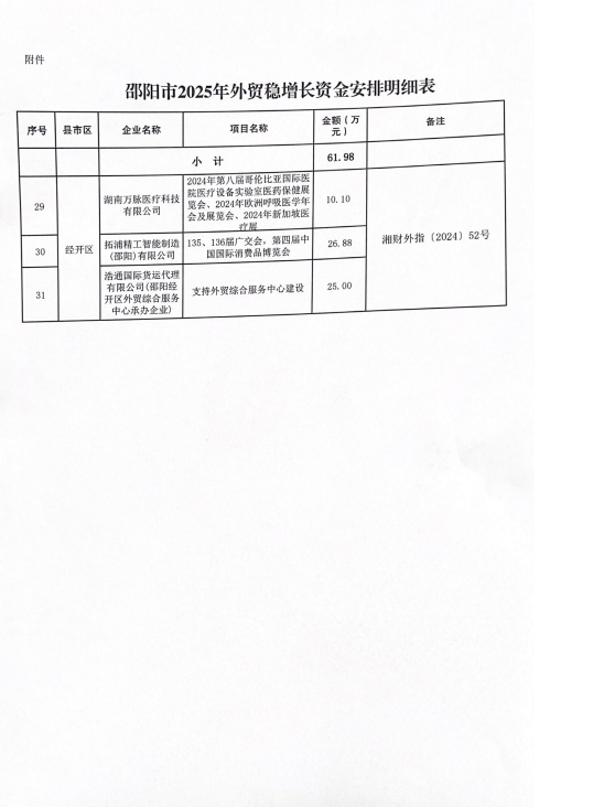 邵阳市财政局关于下达2025年外贸稳增长资金的通知