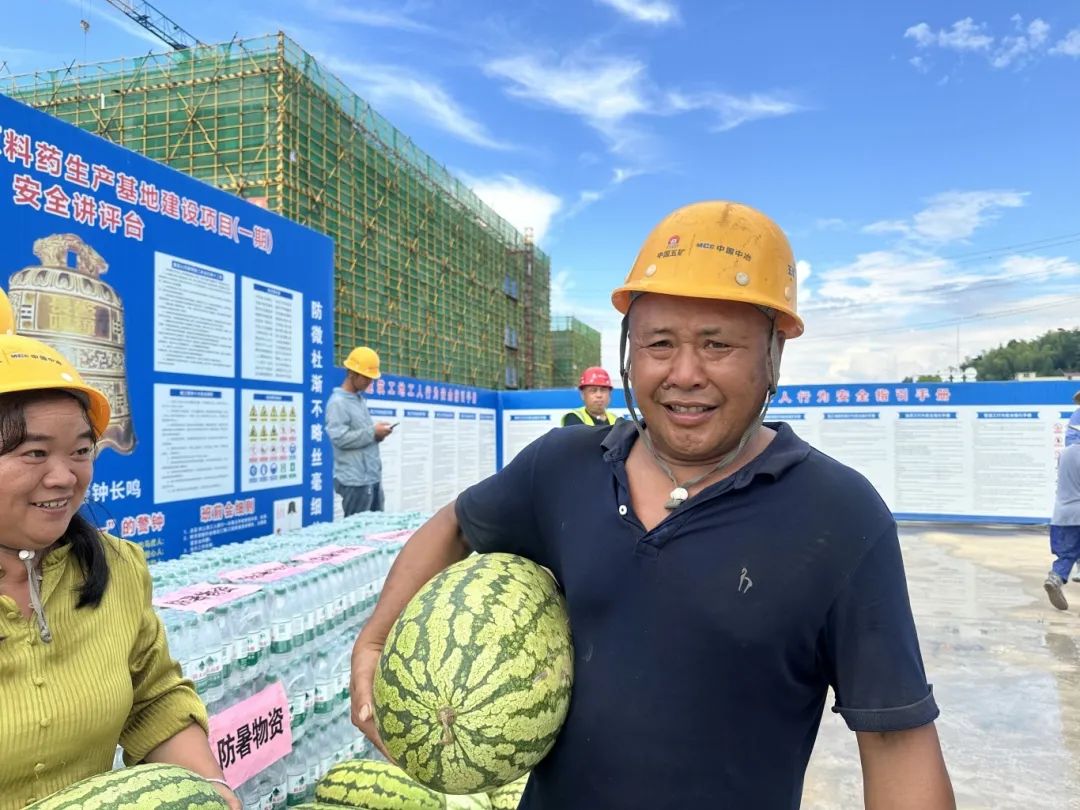 活动中,园区负责人携矿泉水、防暑药品等清凉物资,先后深入企业生产一线、重点项目施工现场。每到一处,负责人都与一线劳动者亲切交谈,详细询问他们的工作强度与生活需求,对大家顶着酷暑、坚守岗位的奉献精神致以崇高敬意和诚挚感谢,并反复叮嘱:“高温天气一定要做好个人防护,合理调配工作与休息时间,身体是安全生产的第一前提。”