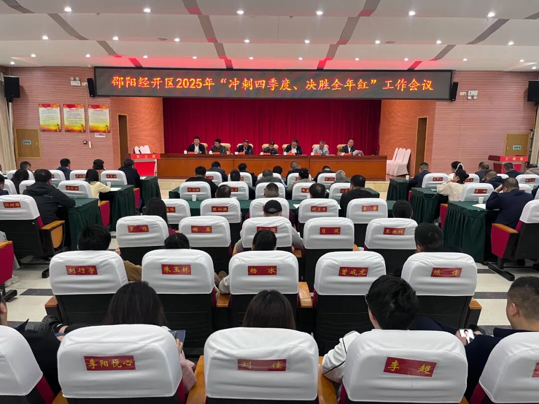 10月20日下午,邵阳经开区召开“冲刺四季度、决胜全年红”工作会议,全面总结前三季度工作,瞄定全年工作目标,部署第四季度重点任务,动员全区上下以“决战必有我、决胜定有我”的姿态,拿出务实举措、鼓足冲天干劲,全力冲刺年度各项目标任务,确保实现“全年红”。党工委书记、管委会主任刘文龙出席并讲话,党工委副书记刘长主持会议。