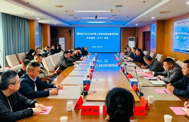 10月29日,邵阳经开区组织召开2025年第三季度安全生产委员会暨消防安全委员会全体(扩大)会议,全面总结三季度安全生产工作,深入分析当前面临的各类风险隐患,并就下一阶段重点工作进行安排部署。党工委书记、管委会主任刘文龙出席会议并讲话。委领导雷友云、龙海鹰、彭遵礼出席会议。
